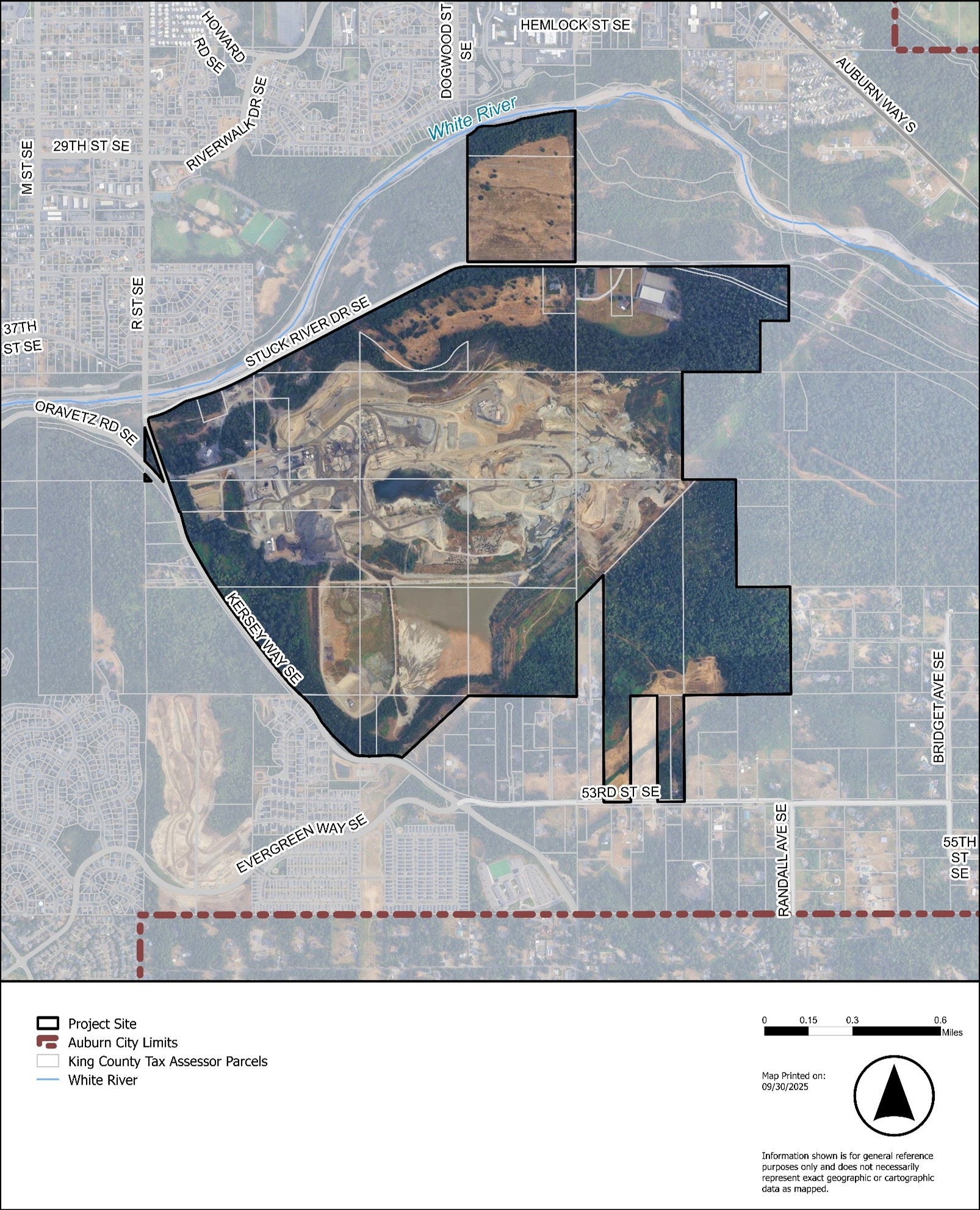 PROJECT LOCATION: Located within the city limits of Auburn, the Stuck River Road/Mount Rainier Vista subarea covers a large, 876-acre land area located south of the White River and Stuck River Road and accessible via R. Street SE and Kersey, Stuck River Road, Kersey Way SE, and 53rd Street SE. See map on next page.