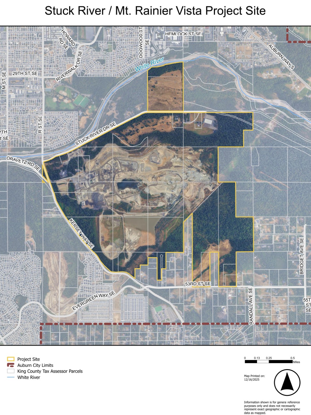 The City of Auburn has determined that it will prepare a Planned Action Environmental Impact Statement (EIS) for the Stuck River Road/Mount Rainier Vista Subarea Plan, currently in development. The City will conduct formal “scoping” to gather input and comments on key issues related to the subarea from November 1 through December 15, 2025. Scoping is conducted under the State Environmental Policy Act (SEPA) to help identify the range of issues and topics and elements of the environment to be studied in the EIS. The City is providing an expanded 45-day scoping to provide additional opportunities for interagency coordination, public participation in the scoping process, and gathering agency and public comments.